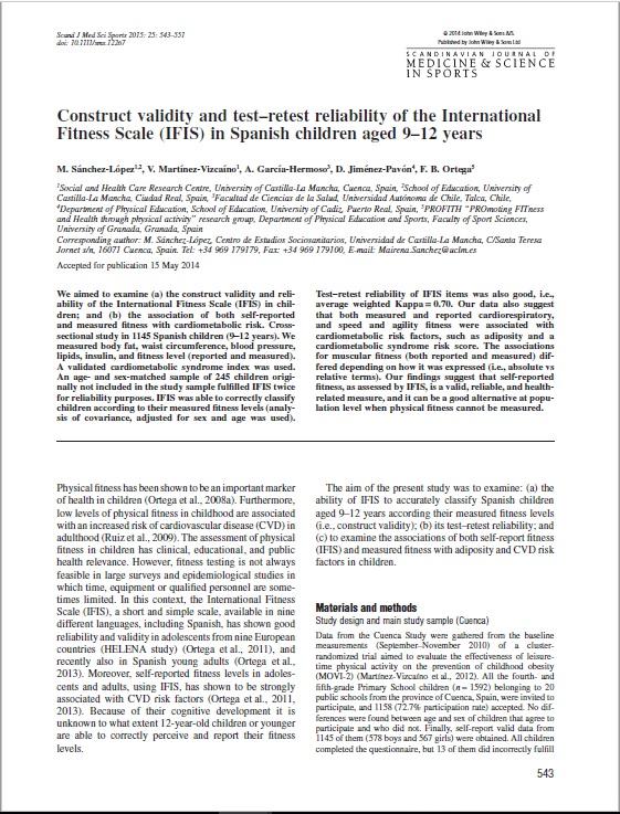 - Construct validity and test–retest reliability of the International Fitness Scale (IFIS) in Spanish children aged 9–12 years
