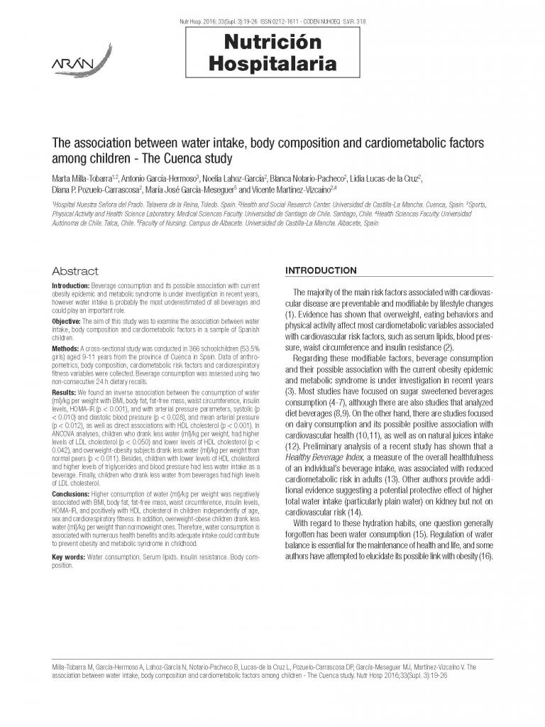 - The association between water intake, body composition and cardiometabolic factors among children - The Cuenca study.