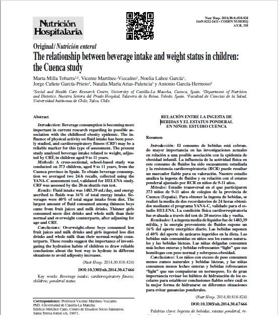 - The relationship between beverage intake and weight status in children: the Cuenca study